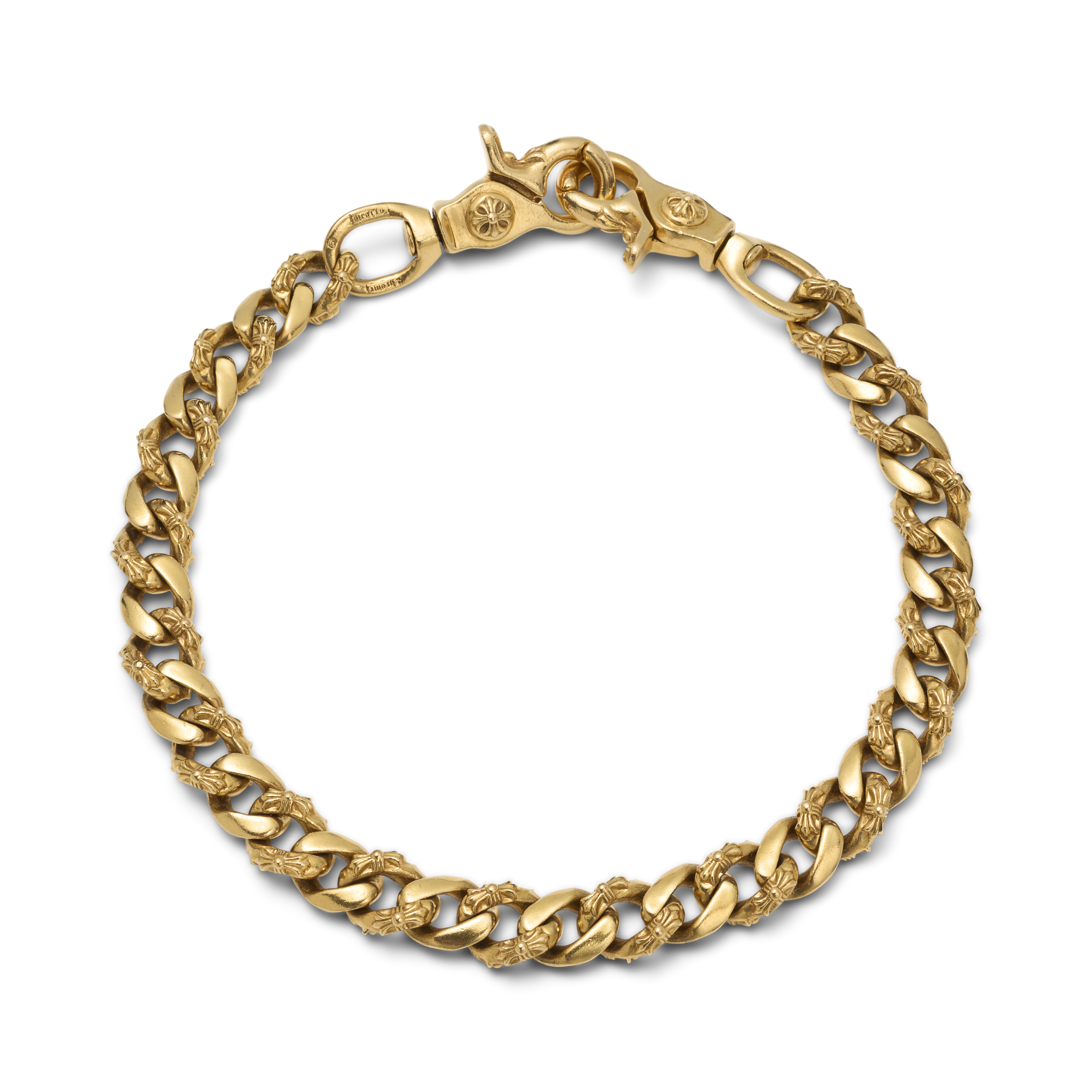 Faisant partie de la même suite Chrome Hearts entièrement en or offerte par Karl Lagerfeld à Sébastien Jondeau, la pièce reflète l'appréciation de Lagerfeld pour la capacité de la maison à élever des formes utilitaires en objets de luxe durable. Alors que Lagerfeld lui-même portait rarement de l'or jaune, il a délibérément choisi de telles pièces pour Jondeau, reconnaissant la façon dont l'or lui conférait à la fois présence et autorité. Signée Chrome Hearts et estampillée 22K, la chaîne porte les marques de l'intentionnalité autant que de l'artisanat.