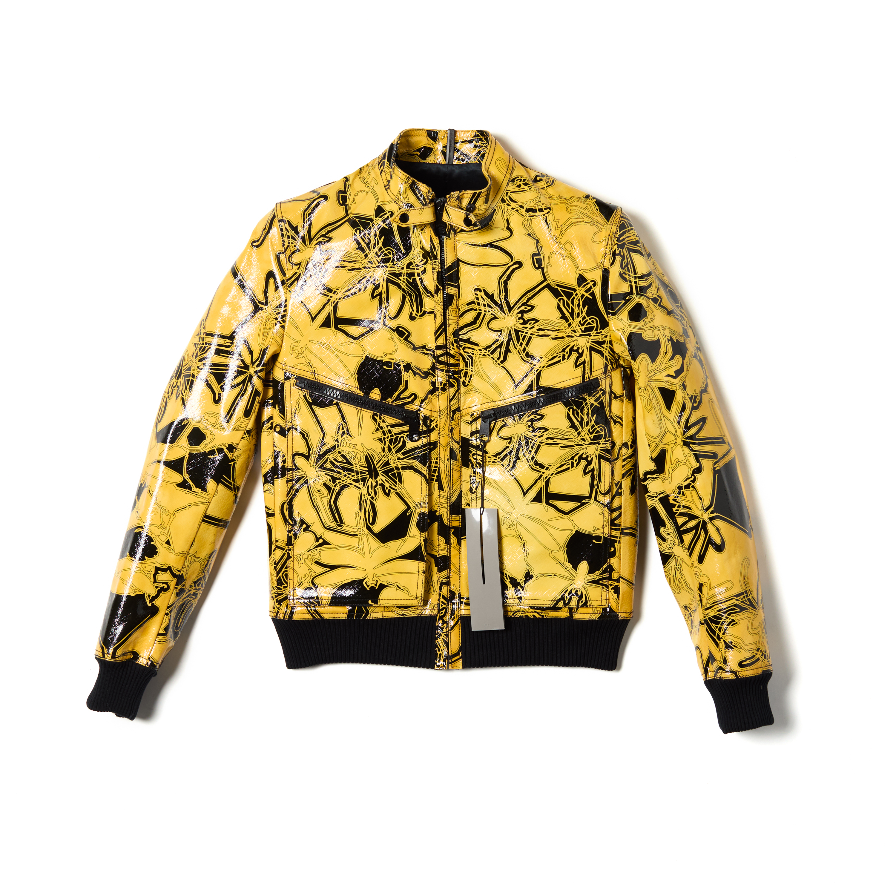 A rare departure into bold color-blocking for Dior Homme, this yellow and black jacket showcases Hedi Slimane’s willingness to experiment beyond his signature monochrome palette. While Slimane’s designs often emphasized black and sleek neutrals, he did introduce surprising flashes of color on occasion (for example, a sky-blue jacket appeared in his Autumn/Winter 2005 collection). This piece capitalizes on that experimental spirit: vivid canary yellow patent leather panels sharply contrast with deep black wool, creating a graphic two-tone statement. The high-gloss patent sections not only inject color but also echo the rock-glam touches present in Slimane’s work (akin to the metallic leathers and bold accessories seen on his runways). It’s a jacket that commands attention, encapsulating the daring energy of mid-2000s Dior Homme.