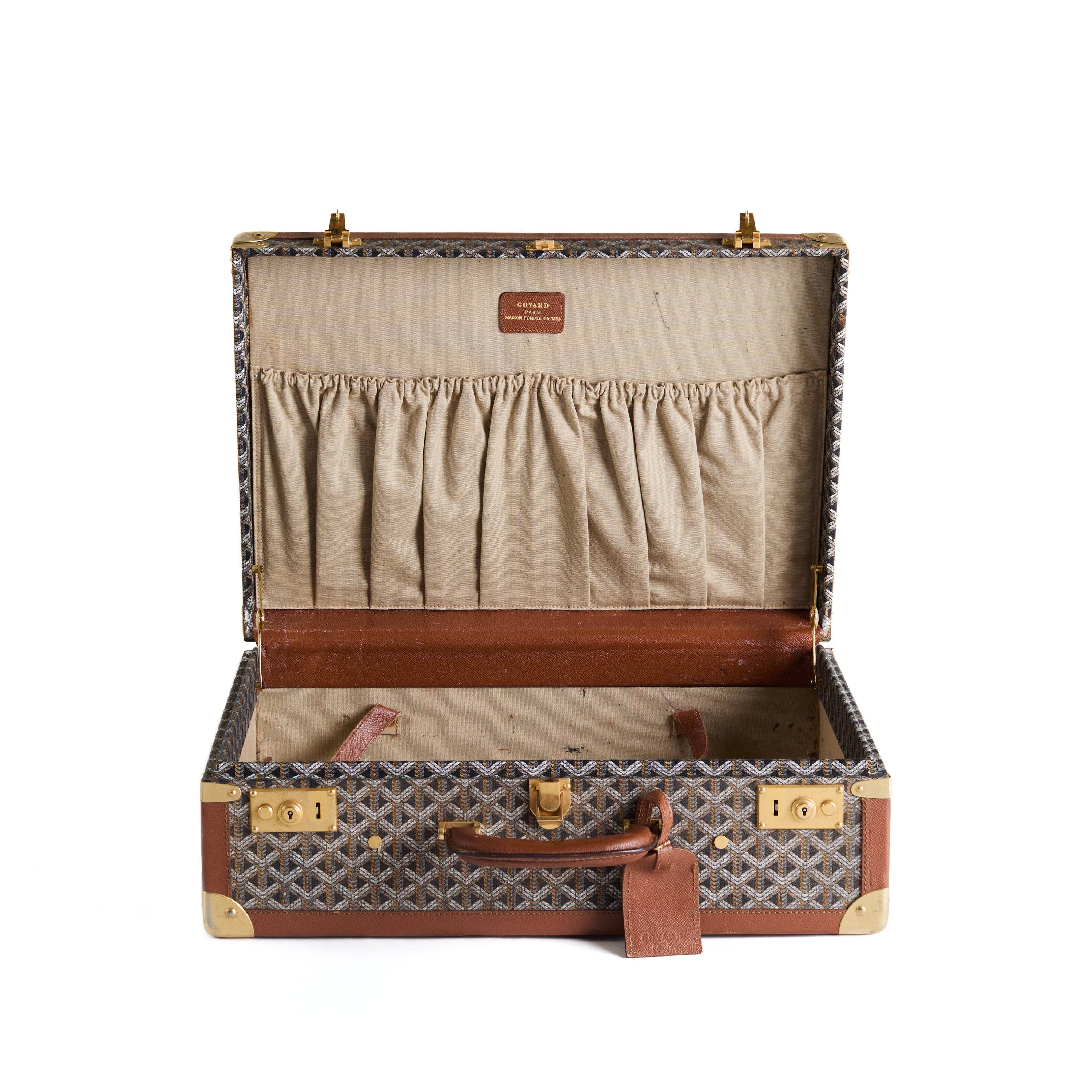 From Sébastien Jondeau’s collection, the trunk belongs to a broader suite of Goyard luggage he recalls as spanning different periods, including older trunks associated with Karl Lagerfeld’s earlier travel and later additions. Passed to Jondeau when the luggage was no longer required, the trunk is offered here as a discrete piece of that larger narrative: a functional fragment of a life lived in transit. Lagerfeld was a longstanding patron of Goyard, having opened his account with the maison in 1972 and maintaining it until his death in 2019.