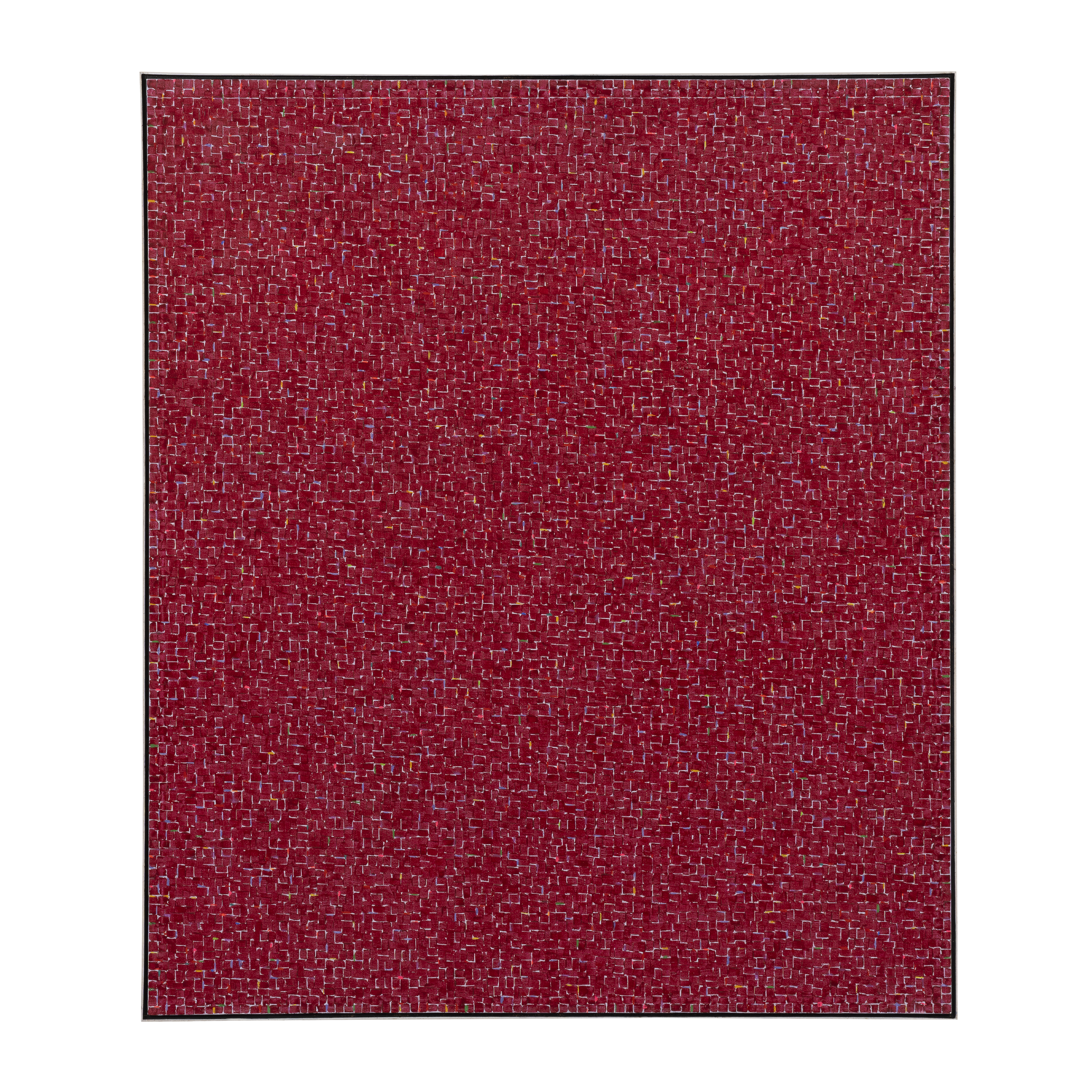 Painted in 2005, WPR-05 reflects the artist’s sustained investigation into color and perception in his Water series. From a distance, the work appears as a uniform expanse of radiant crimson, but when viewed closely, its surface reveals a mosaic of small, deliberate red squares layered over undertones of green and blue. This intricate build-up of color creates a sense of depth and vibration, as if the painting itself were alive with light. The composition feels both still and dynamic, each mark contributing to a quiet rhythm reminiscent of rippling water. In its precision and luminous presence, WPR-05 exemplifies Ahn’s lifelong commitment to translating experience into visual harmony.