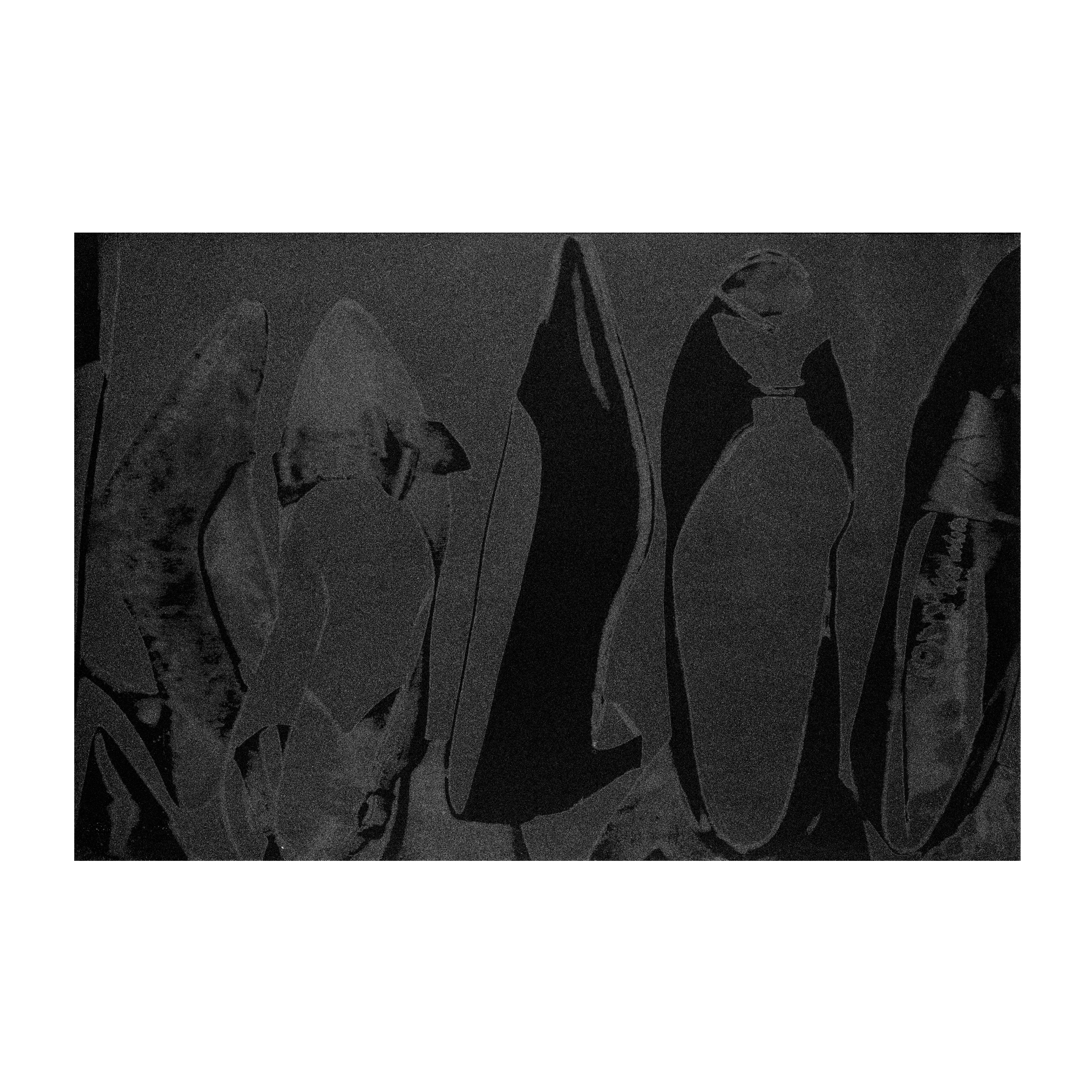 Shoes (Deluxe Edition) reflects Warhol’s early and enduring fascination with fashion, surface, and desire, rooted in his beginnings as a commercial illustrator. Rendered in a restrained palette of dark grey, the addition of diamond dust introduces a tactile shimmer that elevates the everyday object into a symbol of luxury and aspiration.